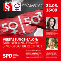 - Einladung zum Verfassungs-Salon der ASF und ASJ. VERFASSUNGS-SALON: MÄNNER UND FRAUEN SIND GLEICHBERECHTIGT! “Männer und Frauen sind gleichberechtigt”, so steht es schon seit 1949 im Grundgesetz; eine hart erkämpfte ...